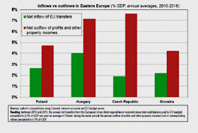 „V Paříži, Berlíně a Bruselu lidé nerozumějí nedostatku vděčnosti za obrovské sumy veřejných peněz, které ze svých daní posílají na východ. Ale v Praze a Varšavě se věci interpretují o dost jinak. Lidé tam zdůrazňují, že návratnost západních investic tady byla obrovská a že sumy, které si odtud západní investoři stahují, výrazně převyšují částky, které sem z Evropské unie přišly. Ve skutečnosti, když se podíváme na čísla, mají ti Češi a Poláci pravdu. Po kolapsu komunismu se postupně západní investoři (především Němci) stali majiteli významné části kapitálu v postkomunistické Evropě. Když vezmeme celkový objem fixního kapitálu (včetně budov), patří jim čtvrtina“ napsal v lednu letošního roku na svůj blog známý francouzský ekonom Thomas Piketty, který se zabývá otázkami příjmové nerovnosti. Jako nejvíce poražený stát z tohoto srovnání vychází jednoznačně Česká republika, což dokládá i přiložený graf.